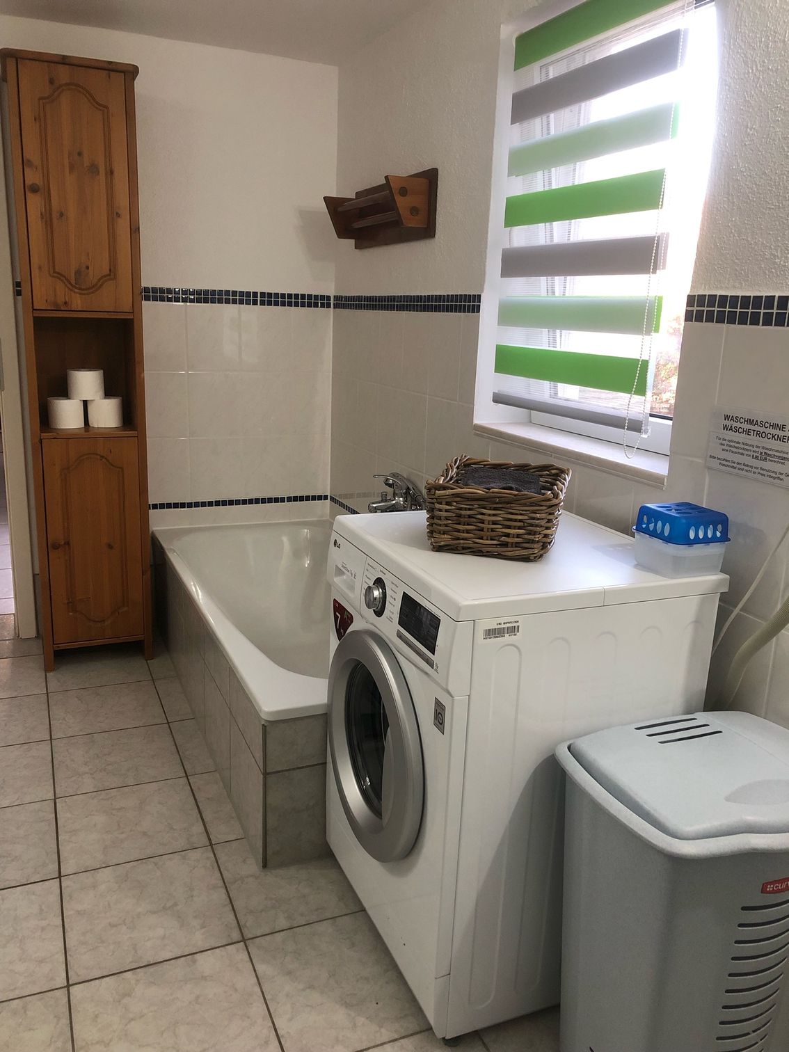 Die Waschmaschine und der Wäschetrockner können gegen eine Gebühr von 6€ je Waschgang genutzt werden.