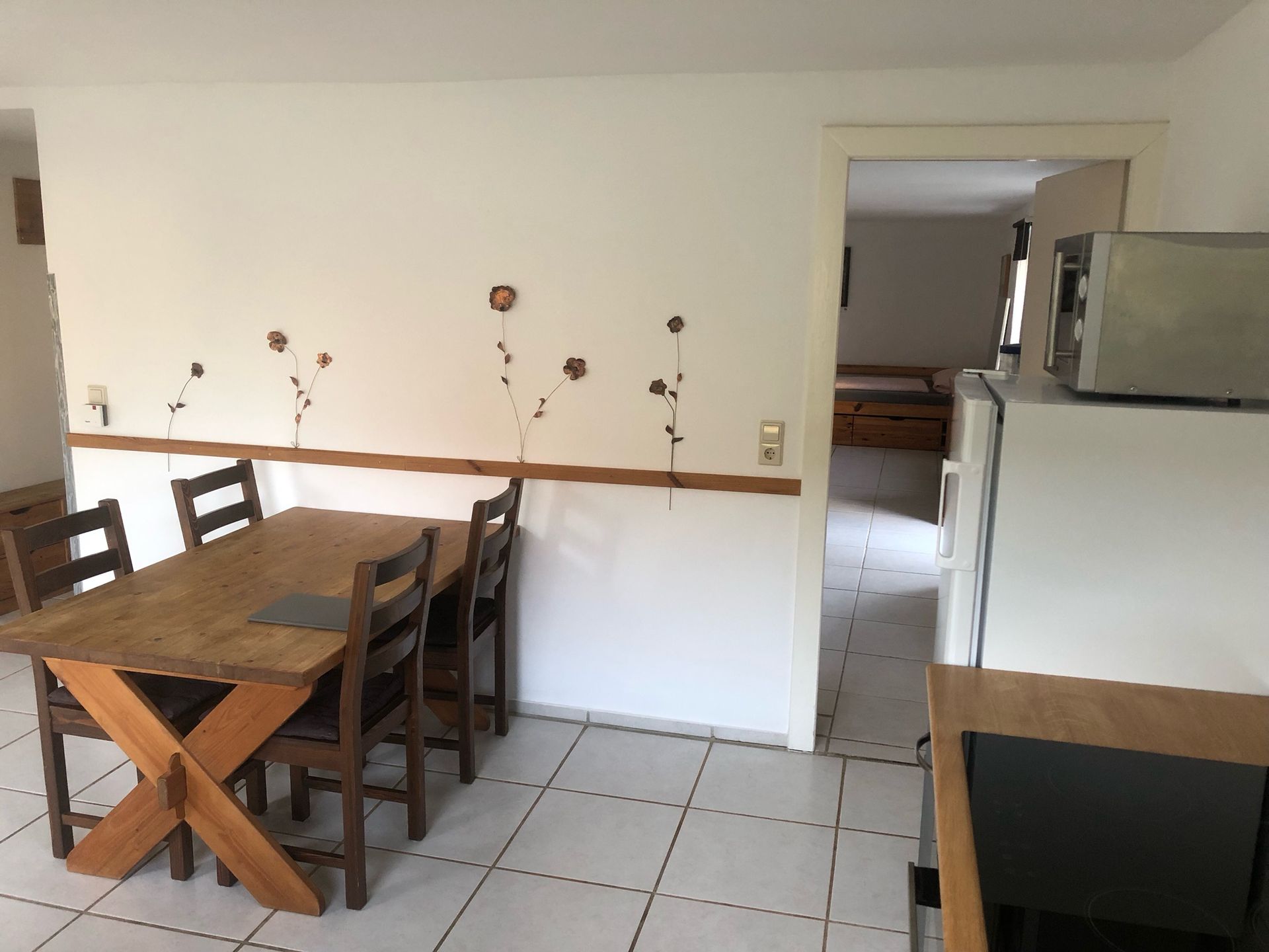 Des Weiteren ist hier auch ein Esstisch mit Stühlen.