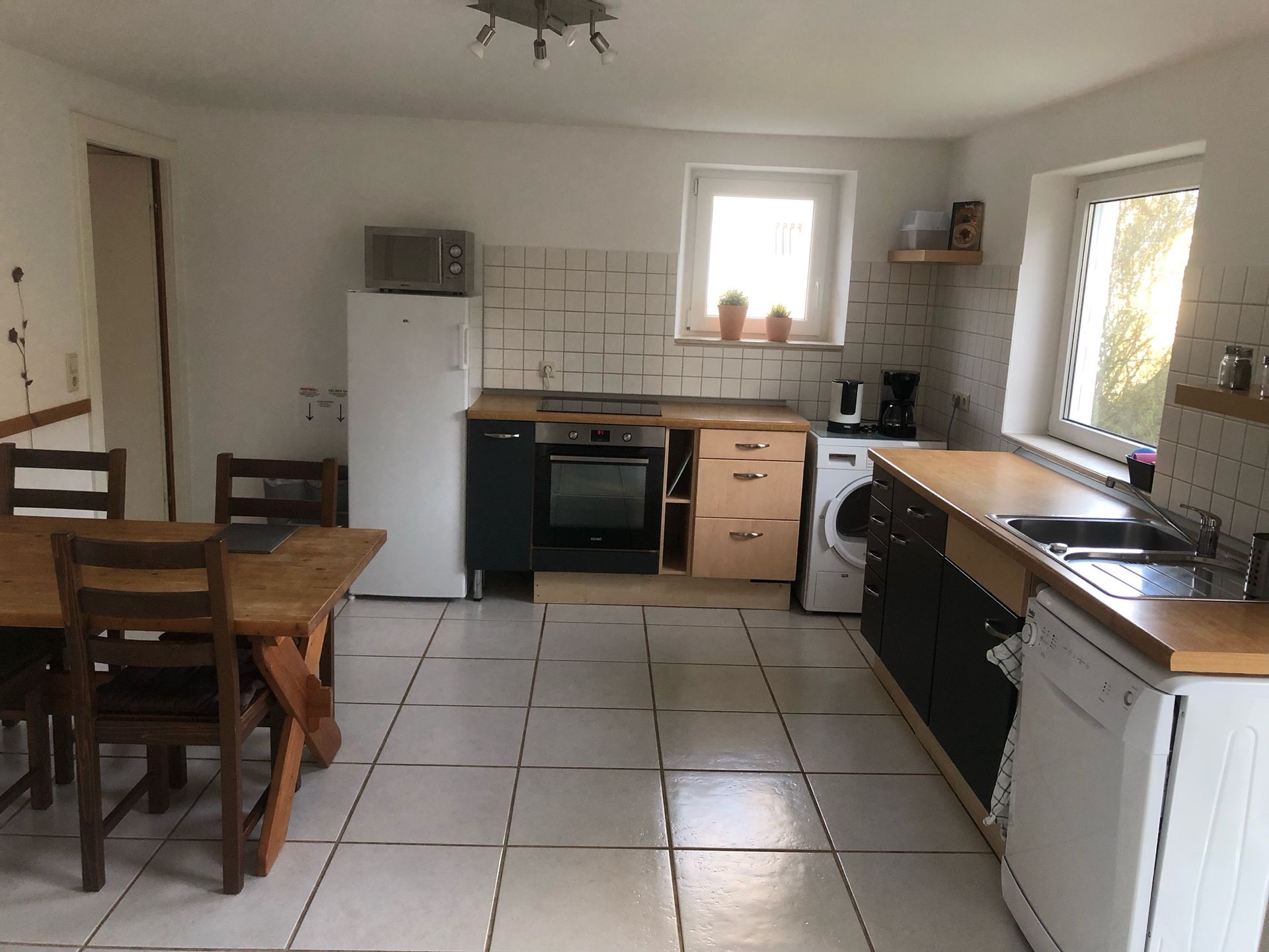 Wasserkocher, Toaster, Töpfe und Pfannen, Geschirr, Besteck, Geschirrtücher und, und, und ausgestattet.