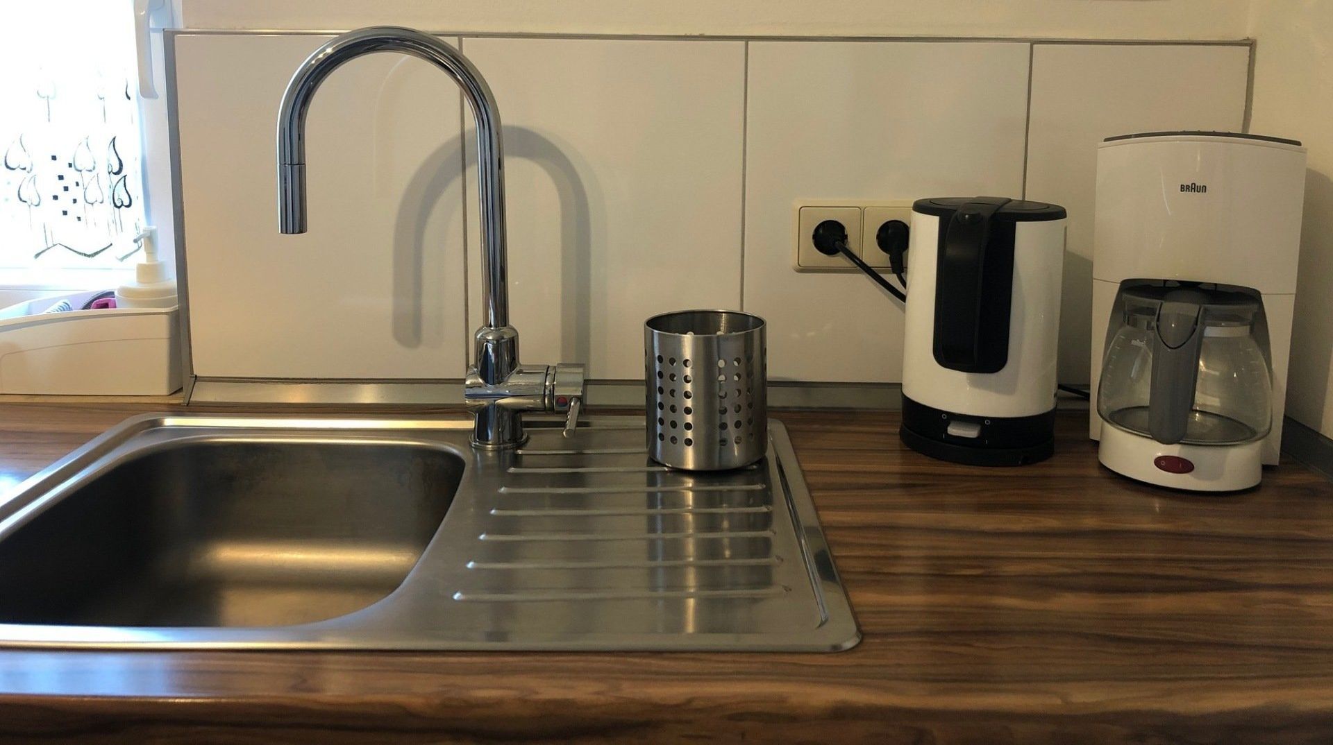 Wasserkocher, Töpfe und Pfannen, Geschirr, Besteck, Geschirrtücher und, und, und... ausgestattet.